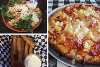 Individual 1-topping pizza or any 6″ sandwich or pasta w/ salad and a soft drink.